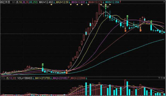 均线是最基础的一个指标,不同周期的均线反映了该股不同周期价格的运行趋势,通过均线与当前的股价比较,可以初步判断该股是否处于阶段强势或弱势,而观察不同周期的均线走势可以把握当前个股走势的运行方向。