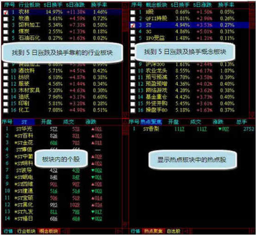 除此之外还可以先找到行业与概念板块中的热点板块,之后运用热点聚焦功能将这些板块交集,找出在短线可能较有爆发力的个股。