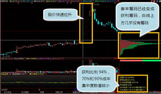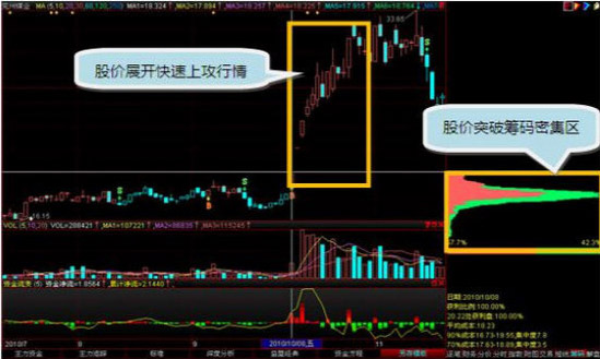 10月8日股价成功突破筹码的密集区,展开快速上攻行情。