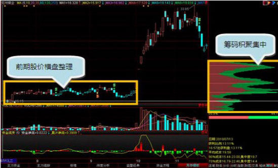 3.前期横盘整理之后开始突破的个股更靠谱(主力还没有出货空间) 选出的股票中有些前期已经大涨,虽然筹码依然还是很集中没有开始派发,但是主力随时可能出货。如果横盘整理了几个月,主力好不容易吸筹完毕开始拉升,这样的股票往往想象的空间会大一些。